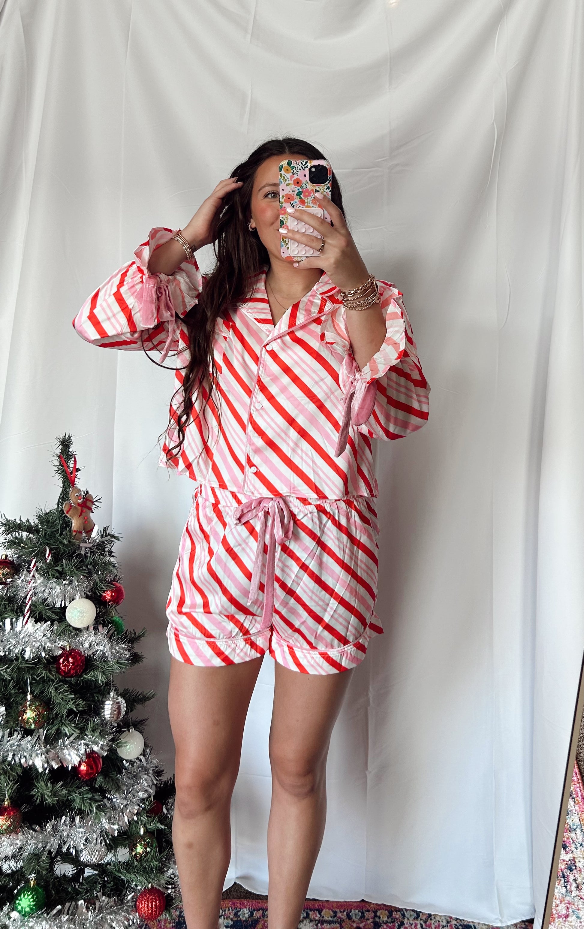 Candy Cane Striped PJ Set - pink/red