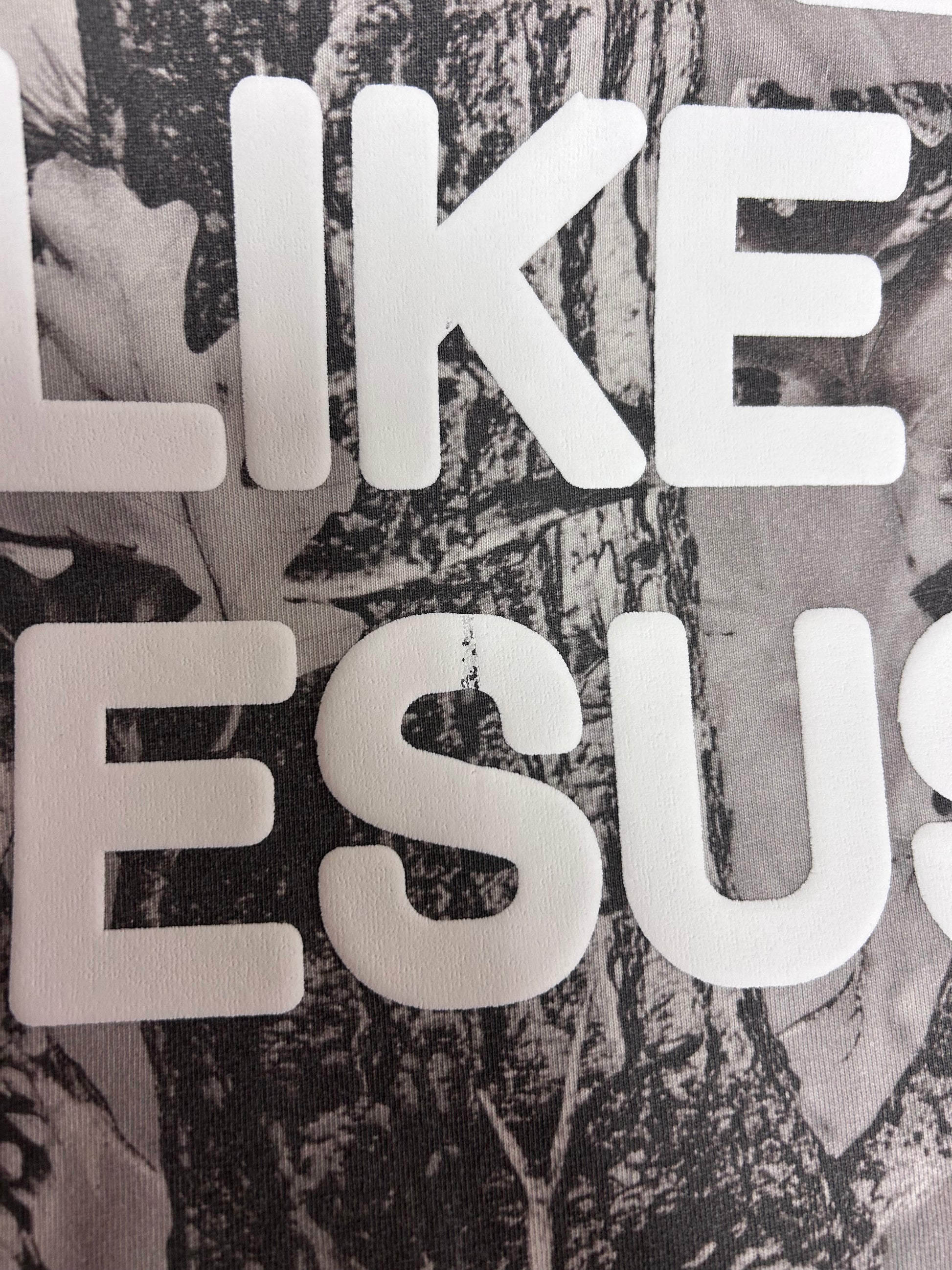 LOVE LIKE JESUS vintage grey wood camo, M whoopsie