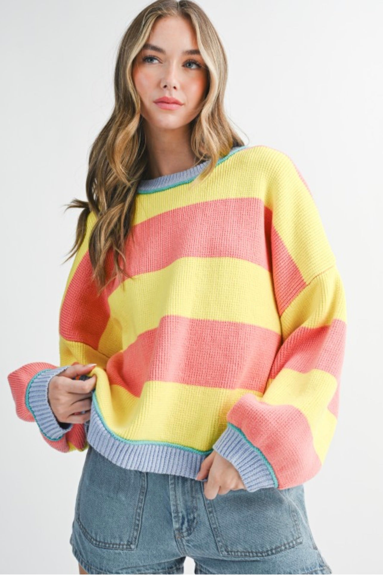 ♡ striped knit crewneck pullover sweater
